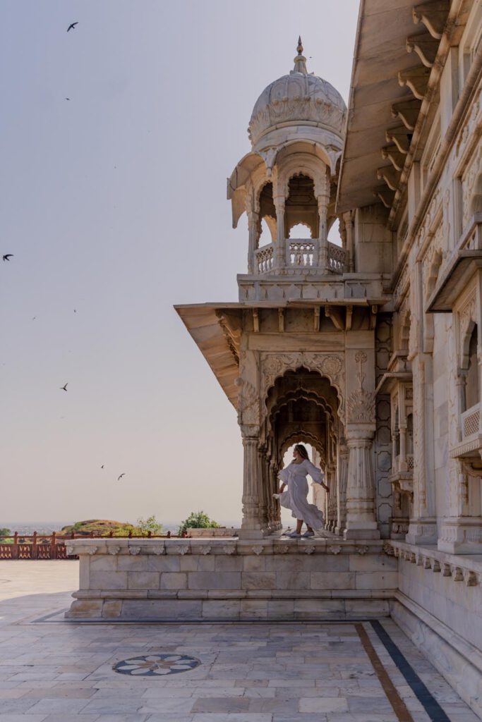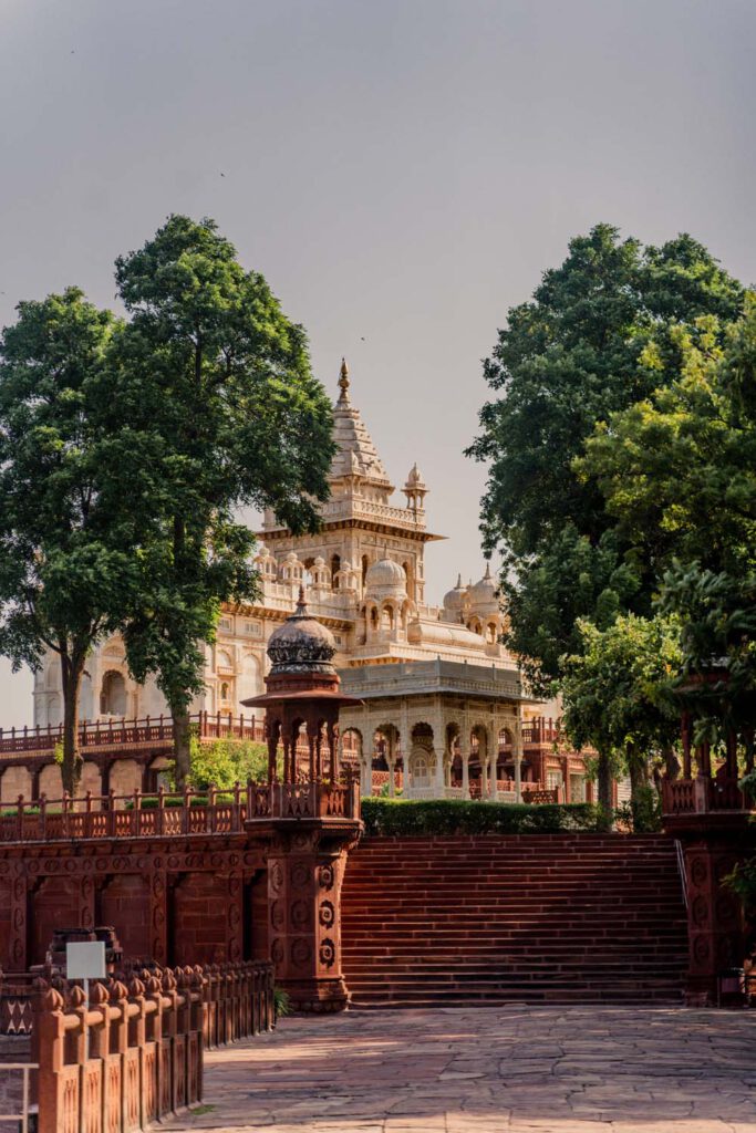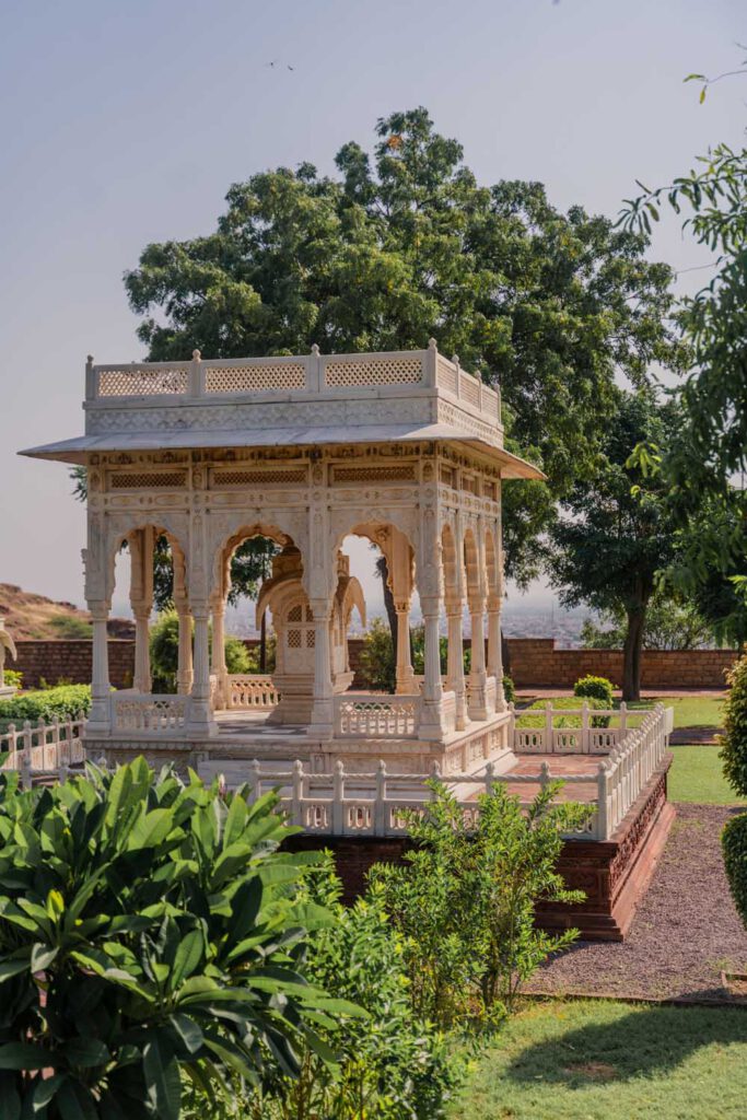 The whole complex consists of the white-marbled main building and the surrounding gardens. Here you will find gazebos offering wonderful panoramic views throughout the garden. My extra tip for visiting Jaswant Thada is to take your time and marvel at all the details of this place. Whether it is the marble details of the Mausoleum, its gazebos or even the wooden doors of the complex. You will find wonderful details all around here for sure!